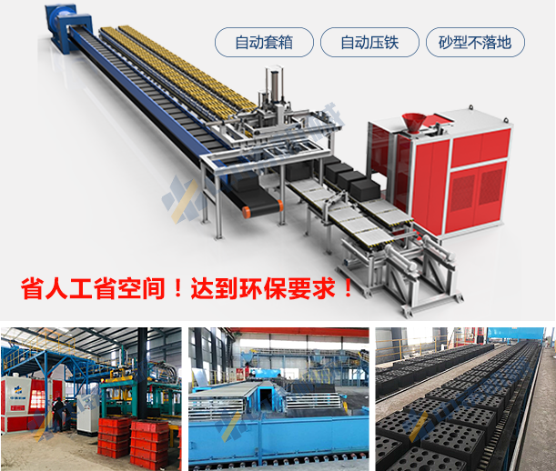 全自動鑄造造型線中鑄全自動造型機具有四高三低的特點: 配置高、效率高、成活率高、使用壽命高、低故障、 低能耗、低維護成本。